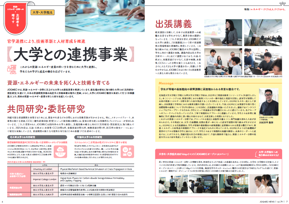 2025.10.08 資源系教育コンソーシアムの取組がJOGMEC広報誌に掲載されました。 大学との連携事業として資源系教育コンソーシアム(SREC)の取組が独立行政法人エネルギー・金属鉱物資源機構(JOGMEC)広報誌に掲載されました。 リンク:JOGMEC NEWS vol.79